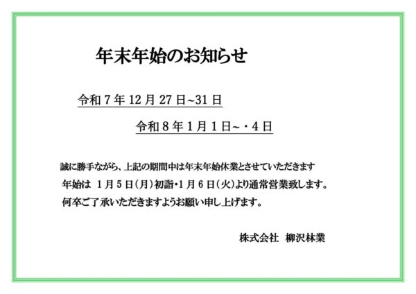 誠に勝手ながら、当社は下記の期間を年末年始休業とさせていただきます。